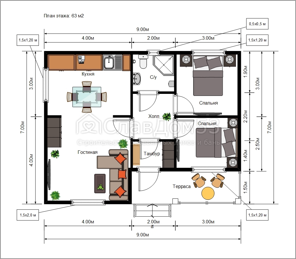 Проект ДК-8. Каркасный дом 7х9м