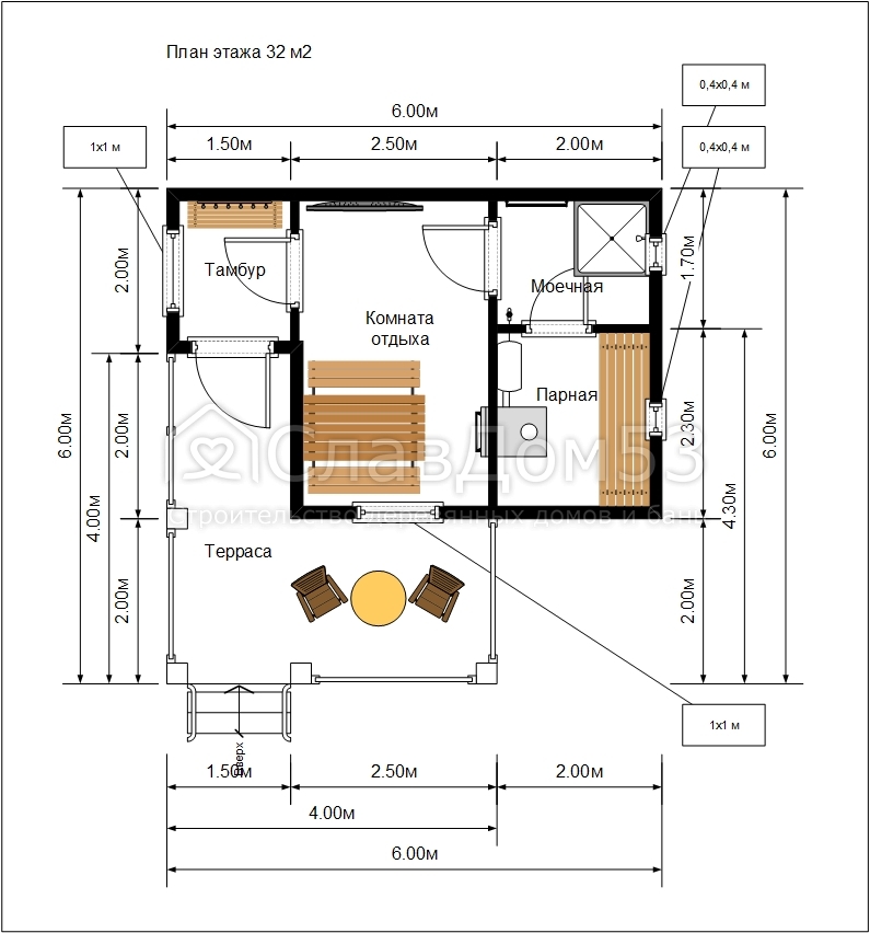 Стены и потолок обшиваются вагонкой из осины класса «А» (стыкованная), предварительно под вагонку по периметру всех стен и потолка прокладывается фольгированная кашированная бумага, устанавливаются прямые двухъярусные полки из строганной осины класса «А»