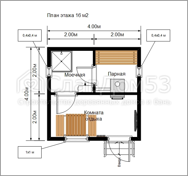 Проект БК-4. Каркасная баня 4х4м