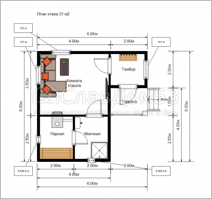 Проект Б-13. Баня из бруса 6х6м