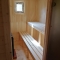 Подшиваются вагонкой камерной сушки класса «Б», утепление каменной ватой ROCKWOOL 100мм или 150мм (в зависимости от комплектации), пароизоляция Наноизол В (или аналог), гвозди для отделки оцинкованные, углы внутренних помещений отделаны плинтусом.