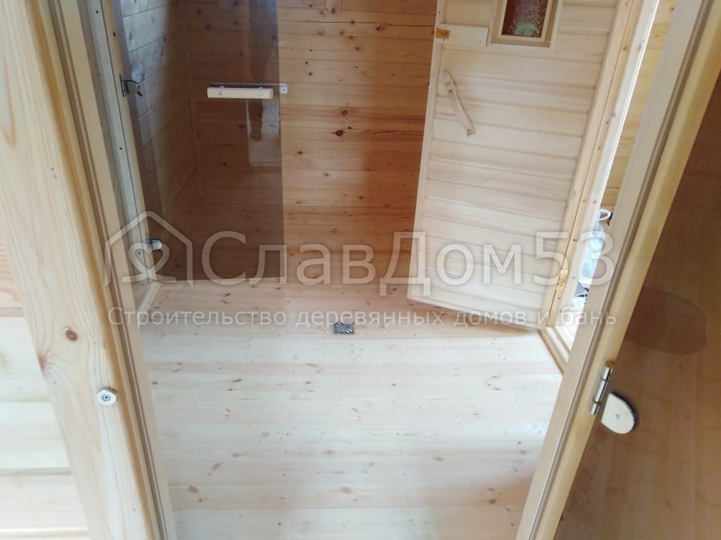 Стены и потолок обшиваются вагонкой из осины класса «А» (стыкованная), предварительно под вагонку по периметру всех стен и потолка прокладывается фольгированная кашированная бумага, устанавливаются прямые двухъярусные полки из строганной осины класса «А»