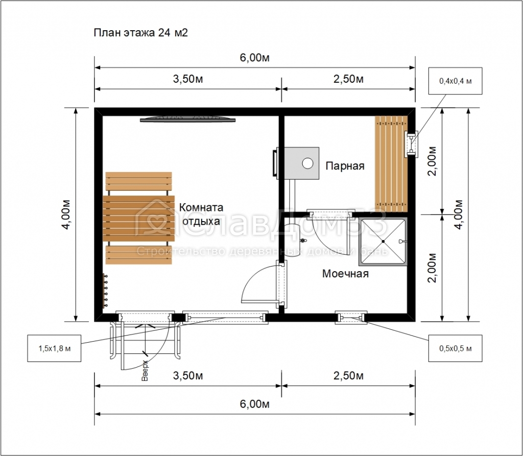 С наружной стороны обшиты имитацией бруса с прокладкой ветро-влагозащиты Наноизол А (или аналог) через контрбрус.