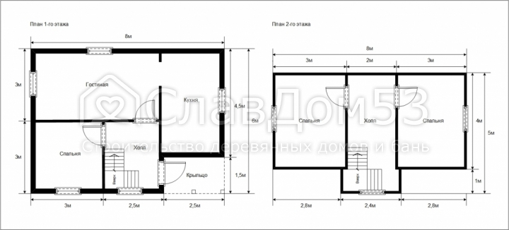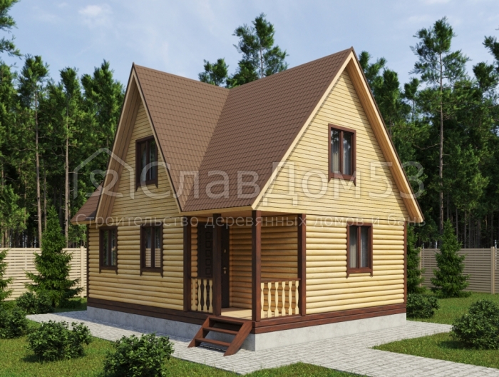Строганный профилированный брус 100х150 (в чистоте 90×140мм) или 150х150 (в чистоте 140×140мм) естественной влажности с наружной стороны прямой или под "блок-хаус", с внутренней стороны прямой, между брусом прокладывается джутовое полотно. Сборка углов производится в "теплый угол" (шип-паз), межвенцовое соединение производится на деревянный нагель